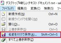 テキストエディタを開いて「名前を付けて保存」を選択します。